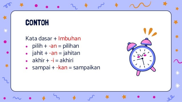Imbuhan ialah bentuk morfem yang tidak boleh hadir bersendirian dalam ayat harus diimbuhkan dengan kata dasar. Berbeda dengan beberapa situs web website sejenis kami berusaha memberikan berbagai fitur lebih seperti kecepatan akses. Imbuhan terdiri morfem terikat sementara kata dasar ialah bentuk morfem bebas yang dapat menerima imbuhan.